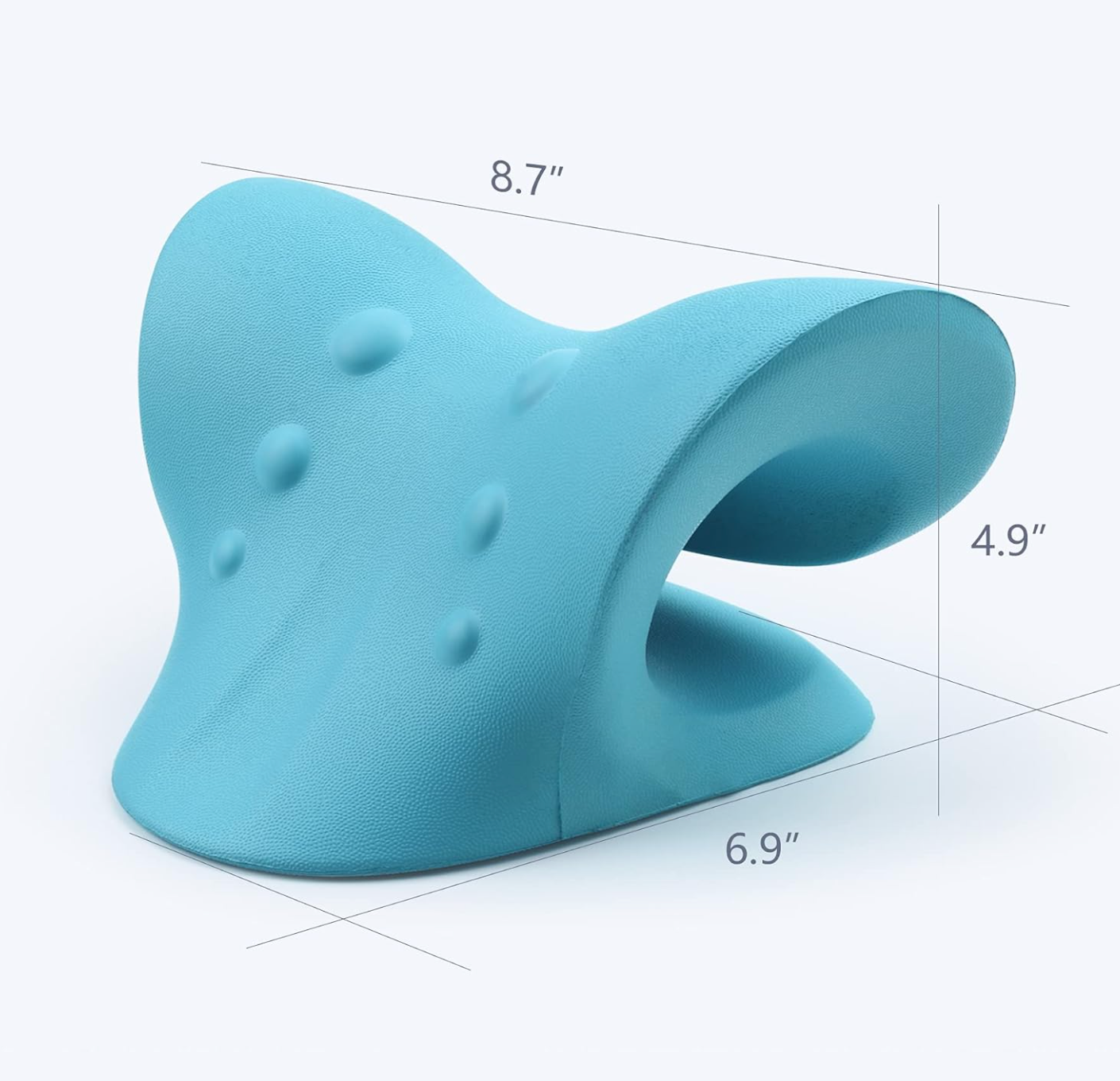 - The neck and shoulder relaxer is ergonomic design, the curve of neck relaxer matches the cervical spine. When you lie down, it offers vertical, horizontal support, and Curvature stretch for neck traction, allowing the cervical traction pillow to position the head to reduce spinal pressure, support the cervical spine and help restore the C-shaped curve of the neck.